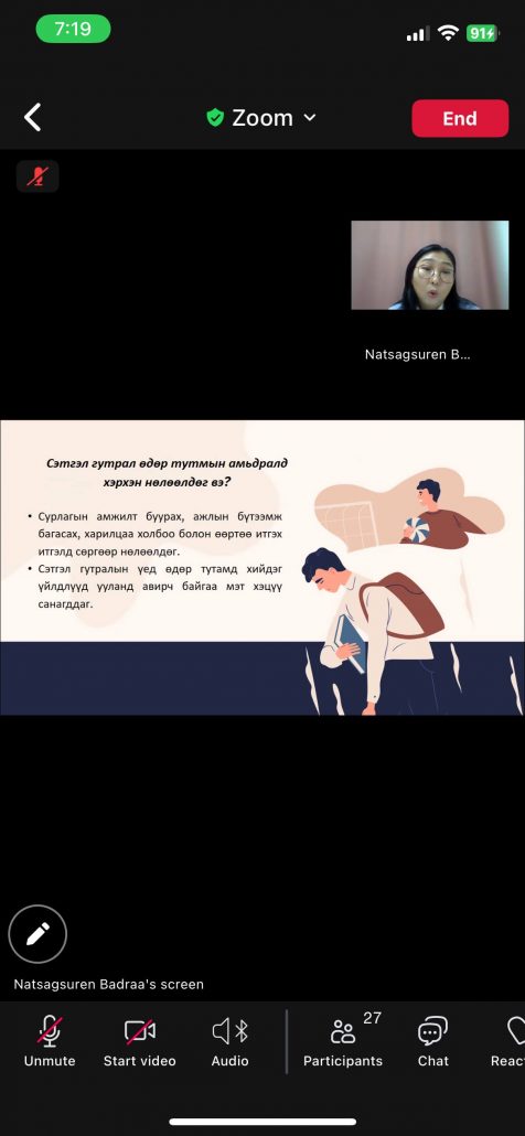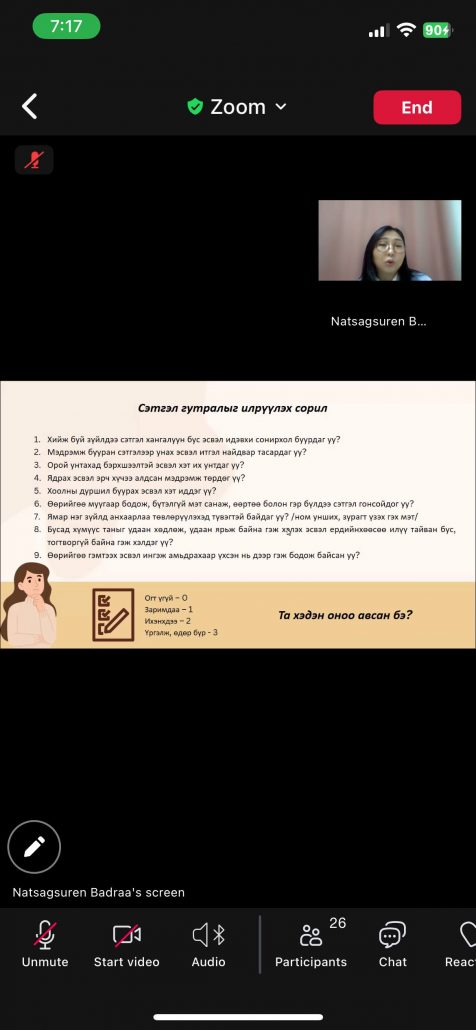 Манай төвөөс ээлжит сэтгэл зүйн цахим сургалтыг 2025 оны 11 сарын 16-ны өдөр зохион байгууллаа.