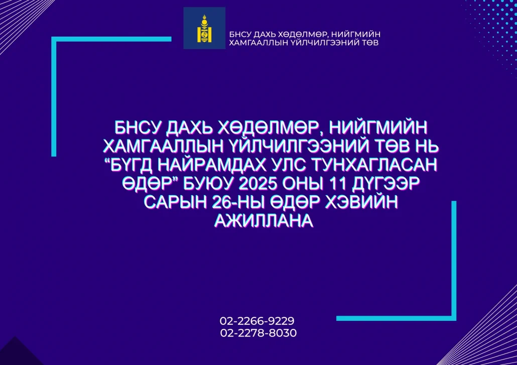 2025 ОНЫ 11 ДҮГЭЭР САРЫН 26-НЫ ӨДӨР ХЭВИЙН АЖИЛЛАНА