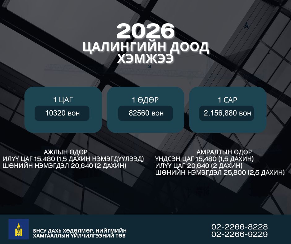 2026 ОНООС МӨРДӨХ ХӨДӨЛМӨРИЙН ХӨЛСНИЙ ДООД ХЭМЖЭЭ