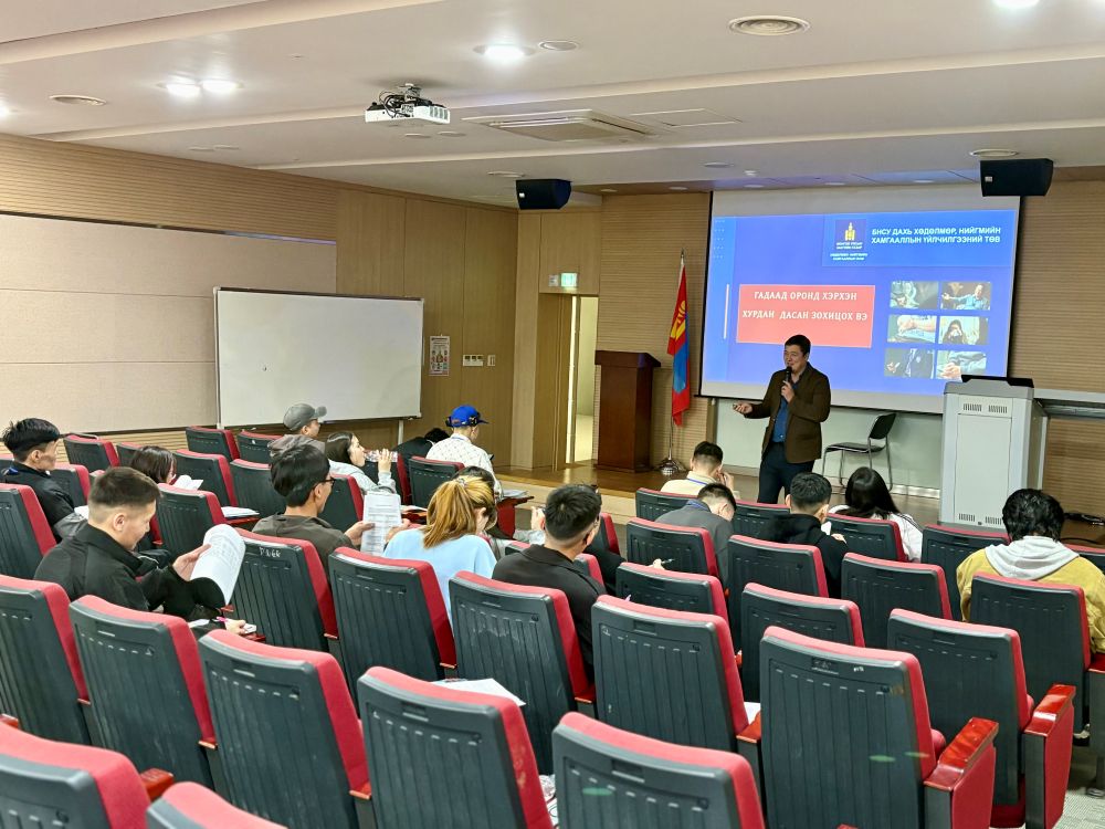 БНСУ дахь Хөдөлмөр, нийгмийн хамгааллын үйлчилгээний төвийн албан хаагчид 2026 оны 4 дүгээр сарын 16-ны өдөр Ёжү хот дахь сургалтын төвд очин Е-9 визээр үйлдвэрлэл, үйлчилгээний салбарт ажиллахаар ирж буй иргэдэд хөдөлмөрийн харилцаа, нийгмийн даатгал, сэтгэл зүйн эрүүл мэндийн сургалт хийж, зөвлөгөө мэдээлэл өглөө.